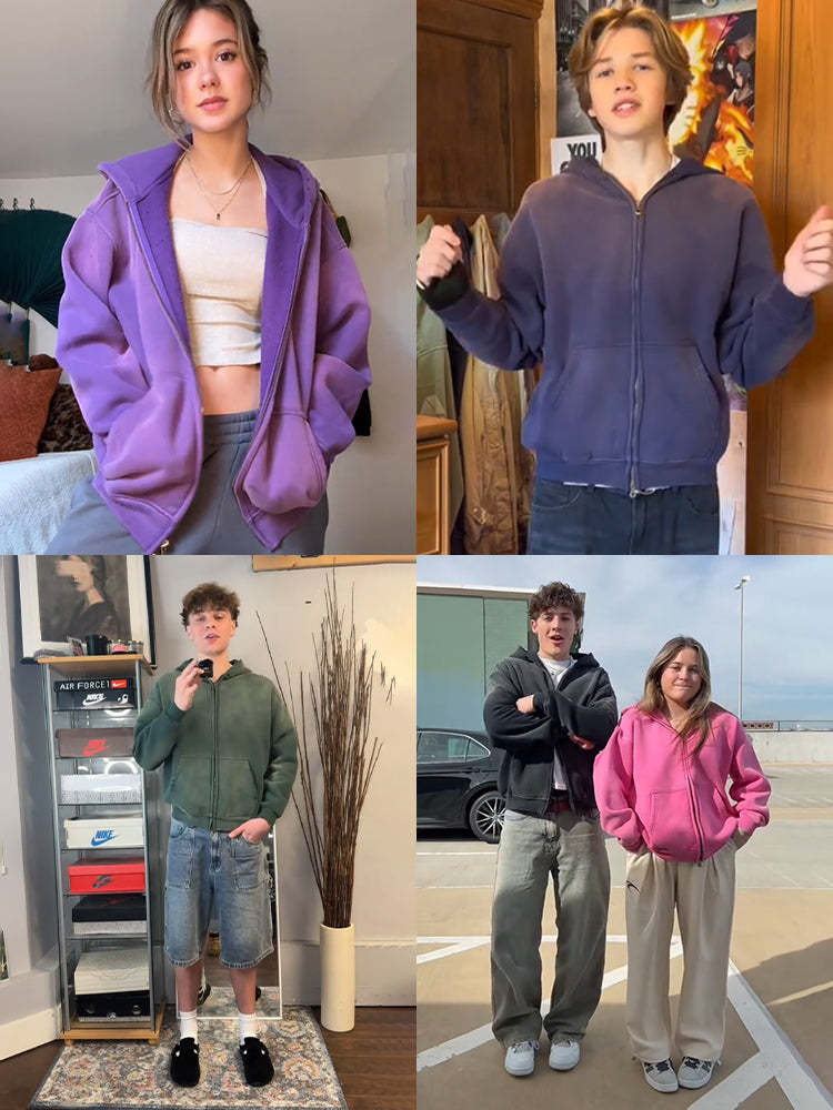 Acid Washed Zip Up Hoodies | Streetwear