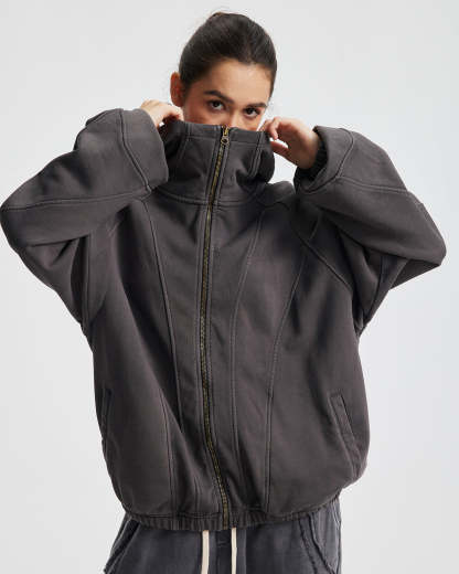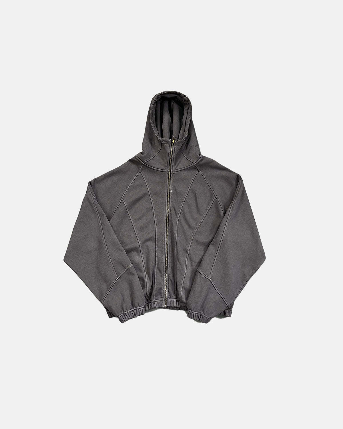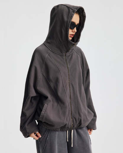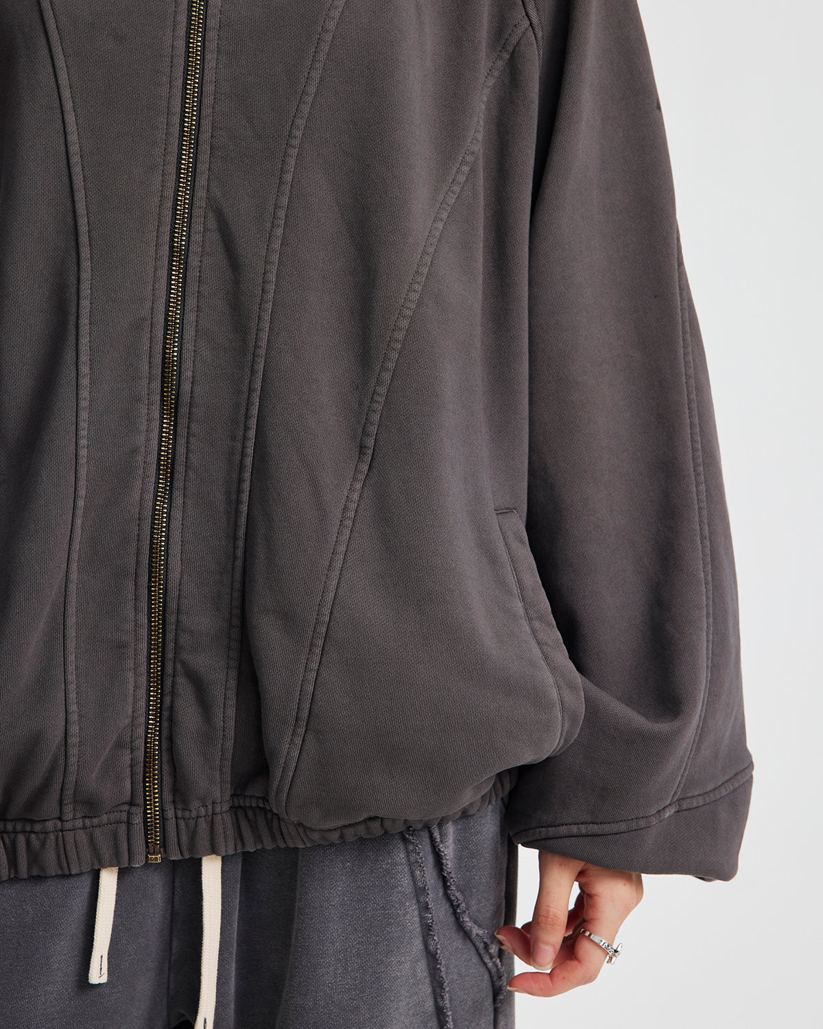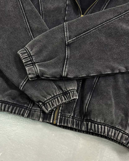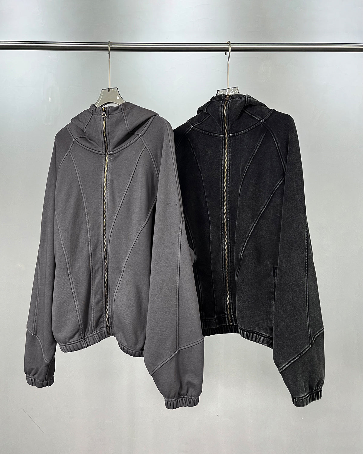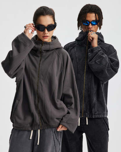 Distressed Stiching Aicd Wash Zip Up Hoodies | Streetwear
