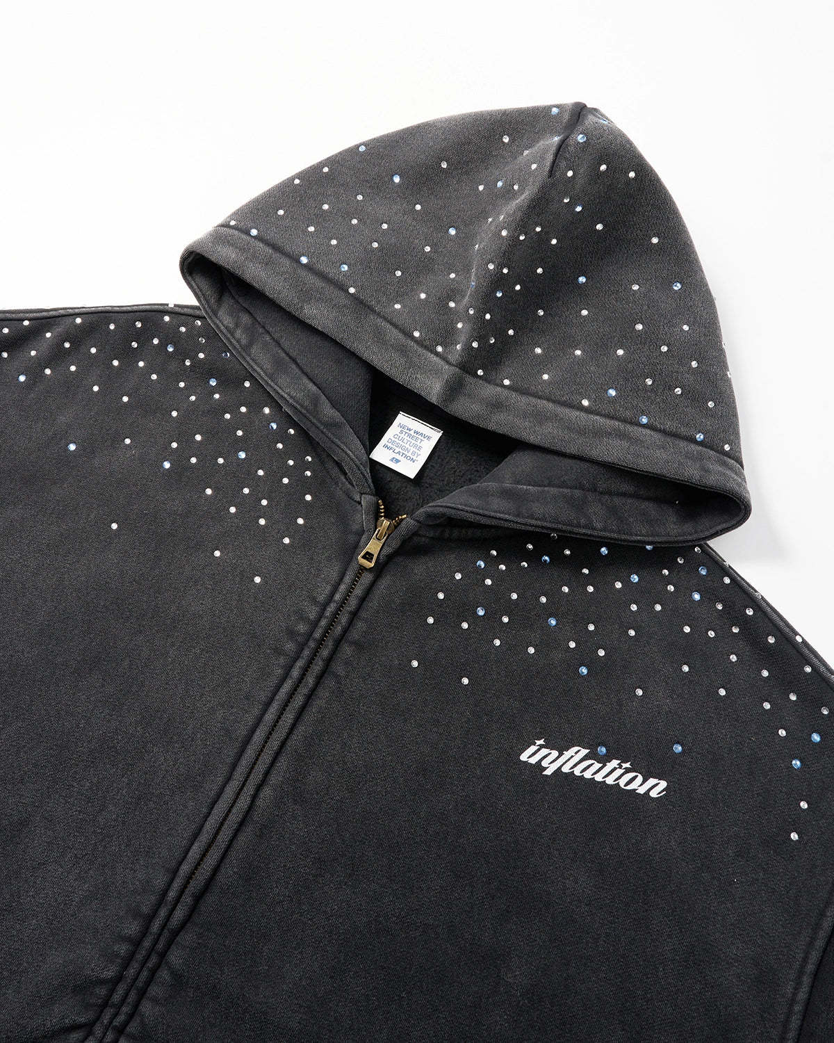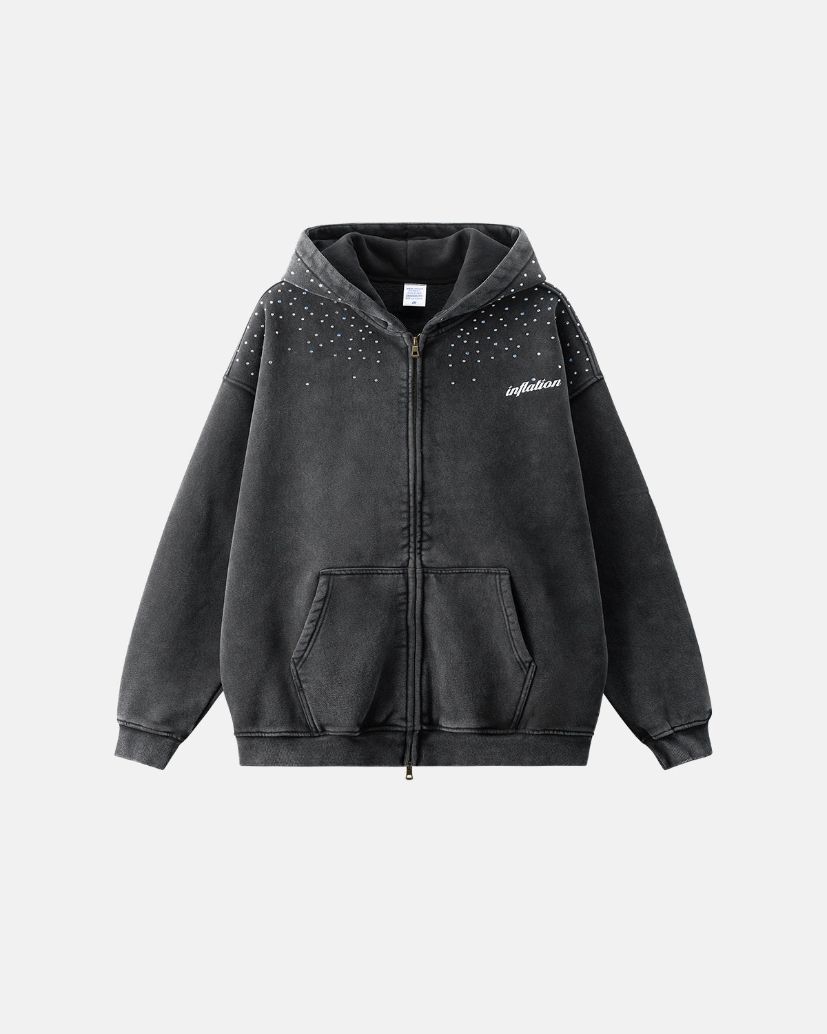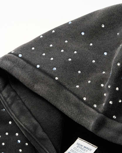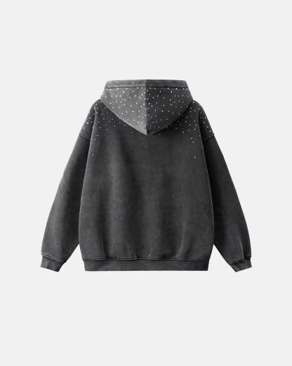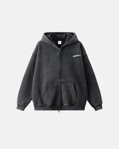 Distressed Washed Rhinestone Zip Up Hoodies | Streetwear