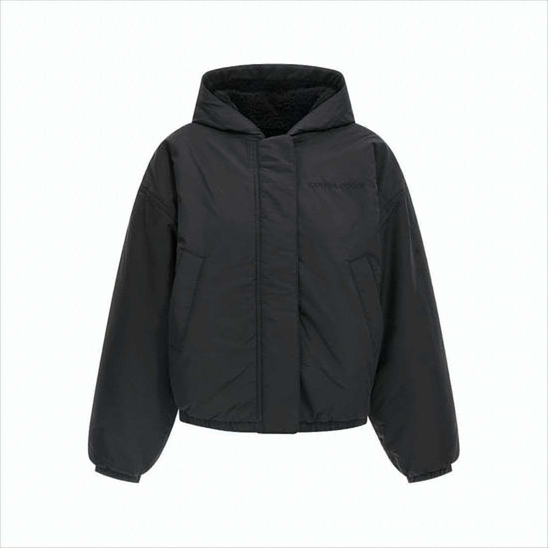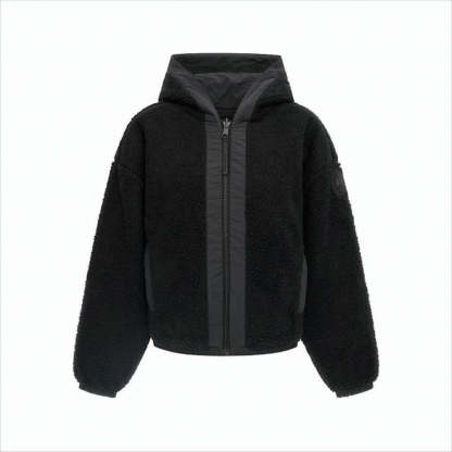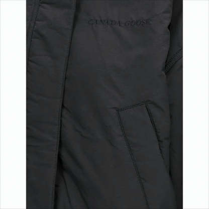 Crafted by Canada Goose, this jacket combines a sophisticated dual-texture design featuring a smooth matte front and plush fleece-like back and sleeves. The hood adds a layer of warmth, while a concealed front zipper and elasticized cuffs enhance functionality. Subtle branding and practical side pockets elevate its contemporary appeal.