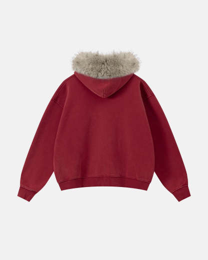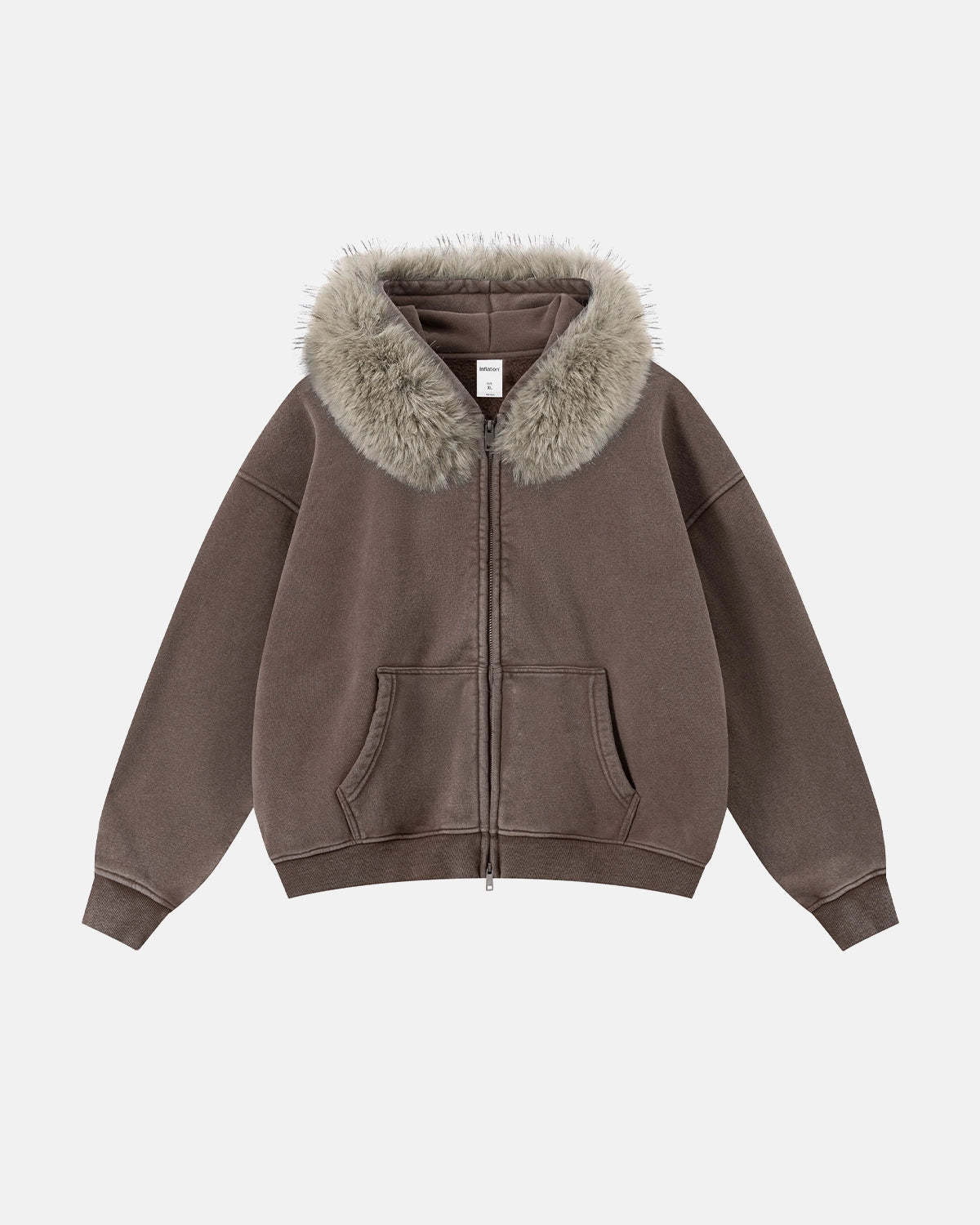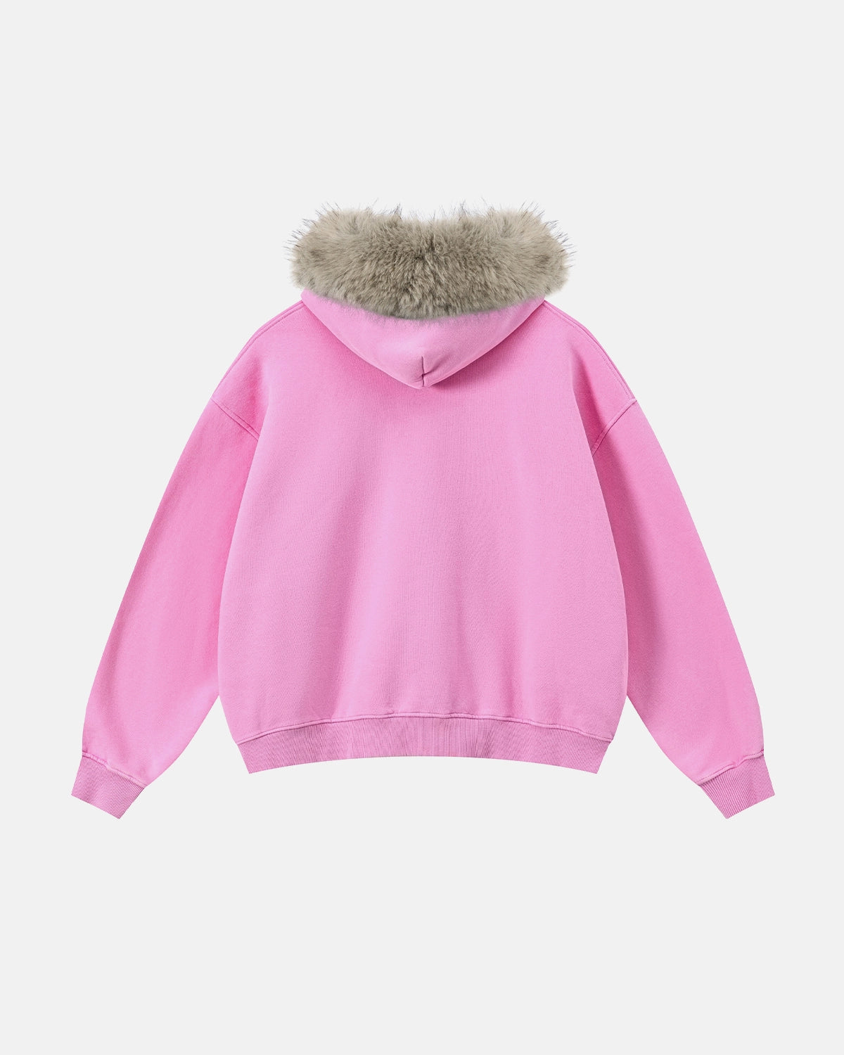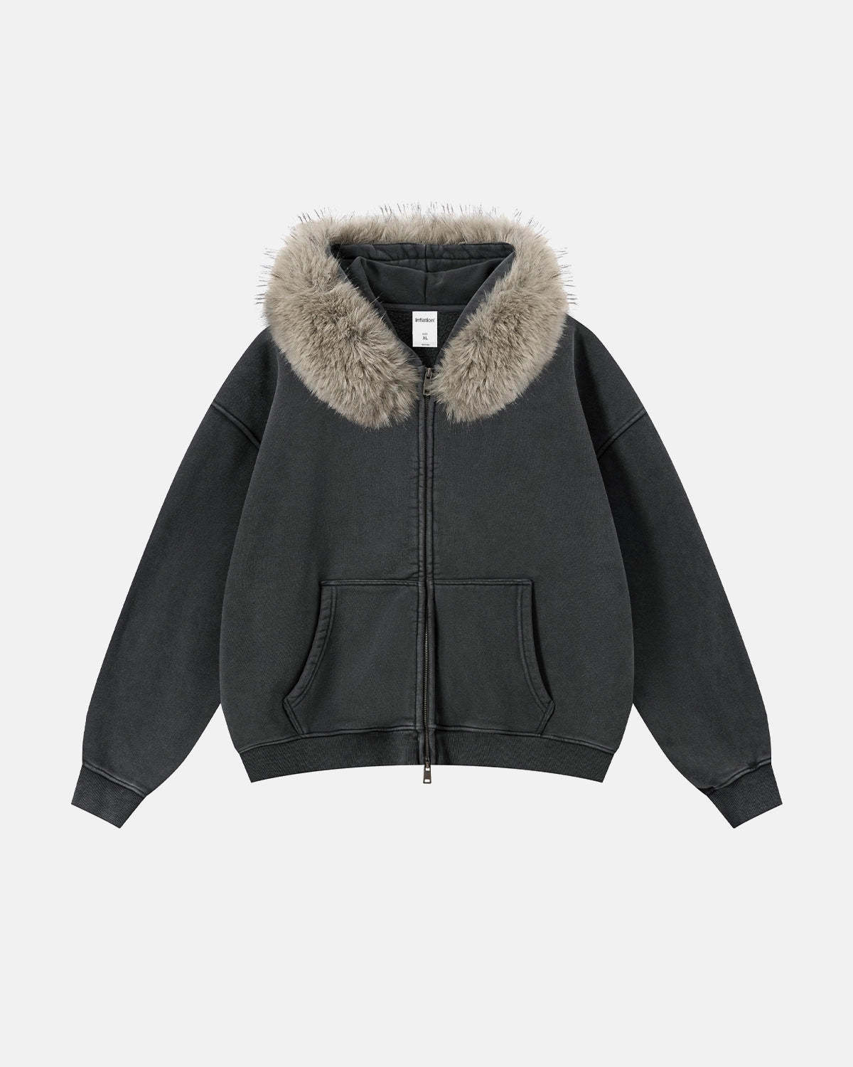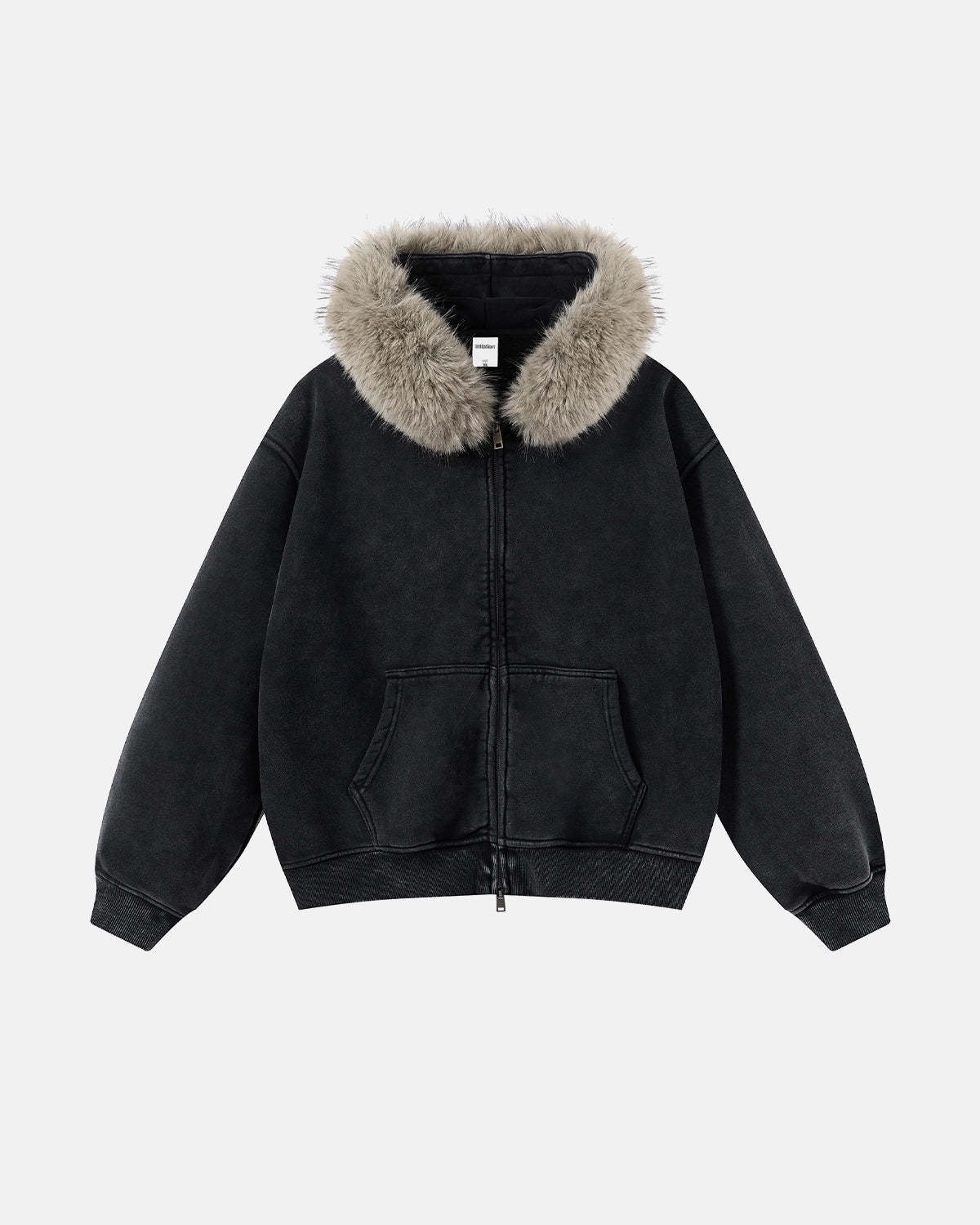 Faux Fur Collar Acid Wash Zip Up Hoodies | Streetwear