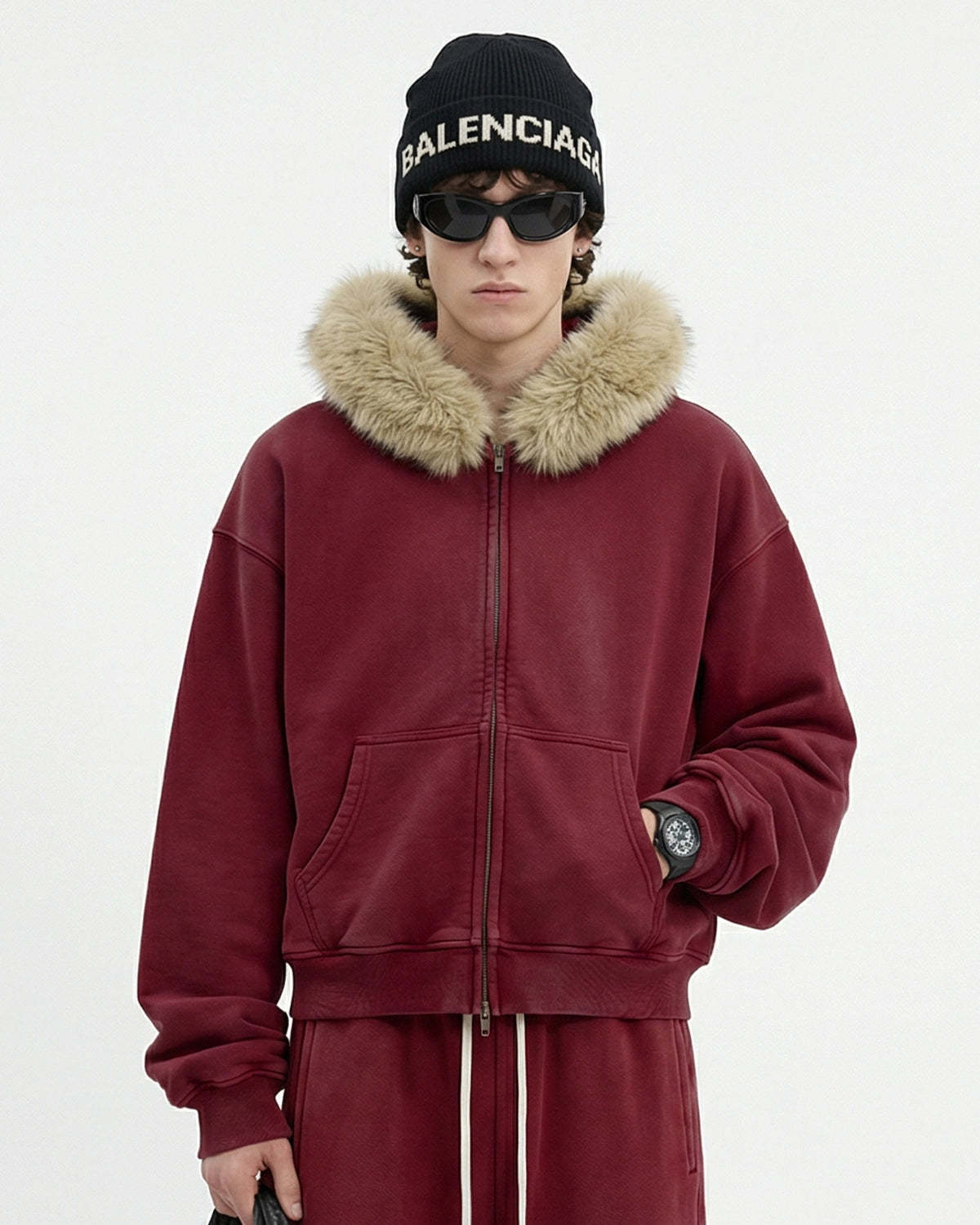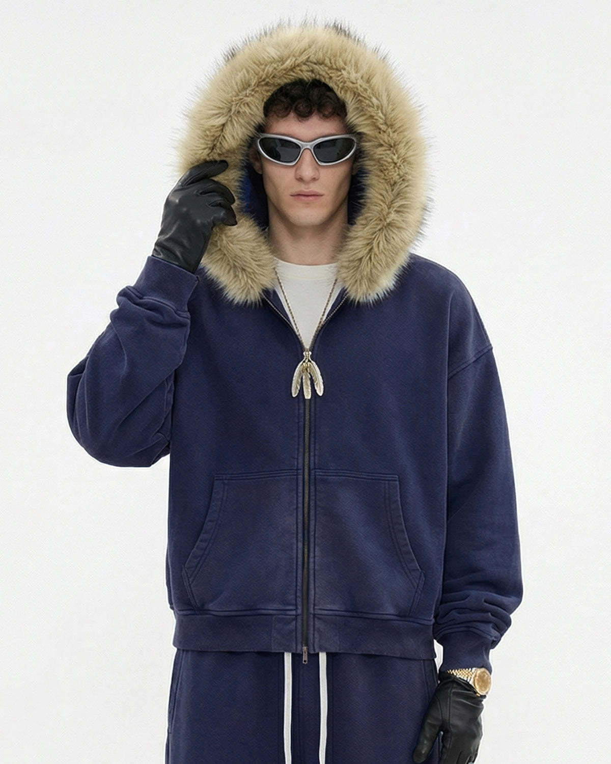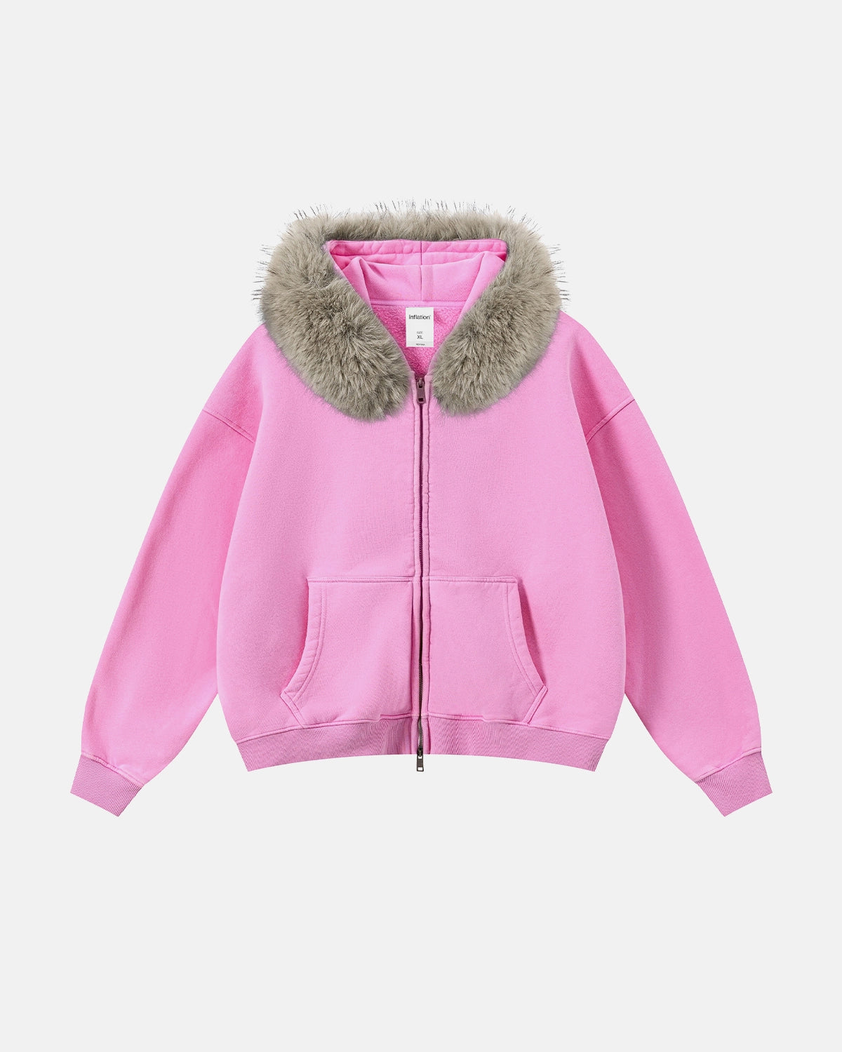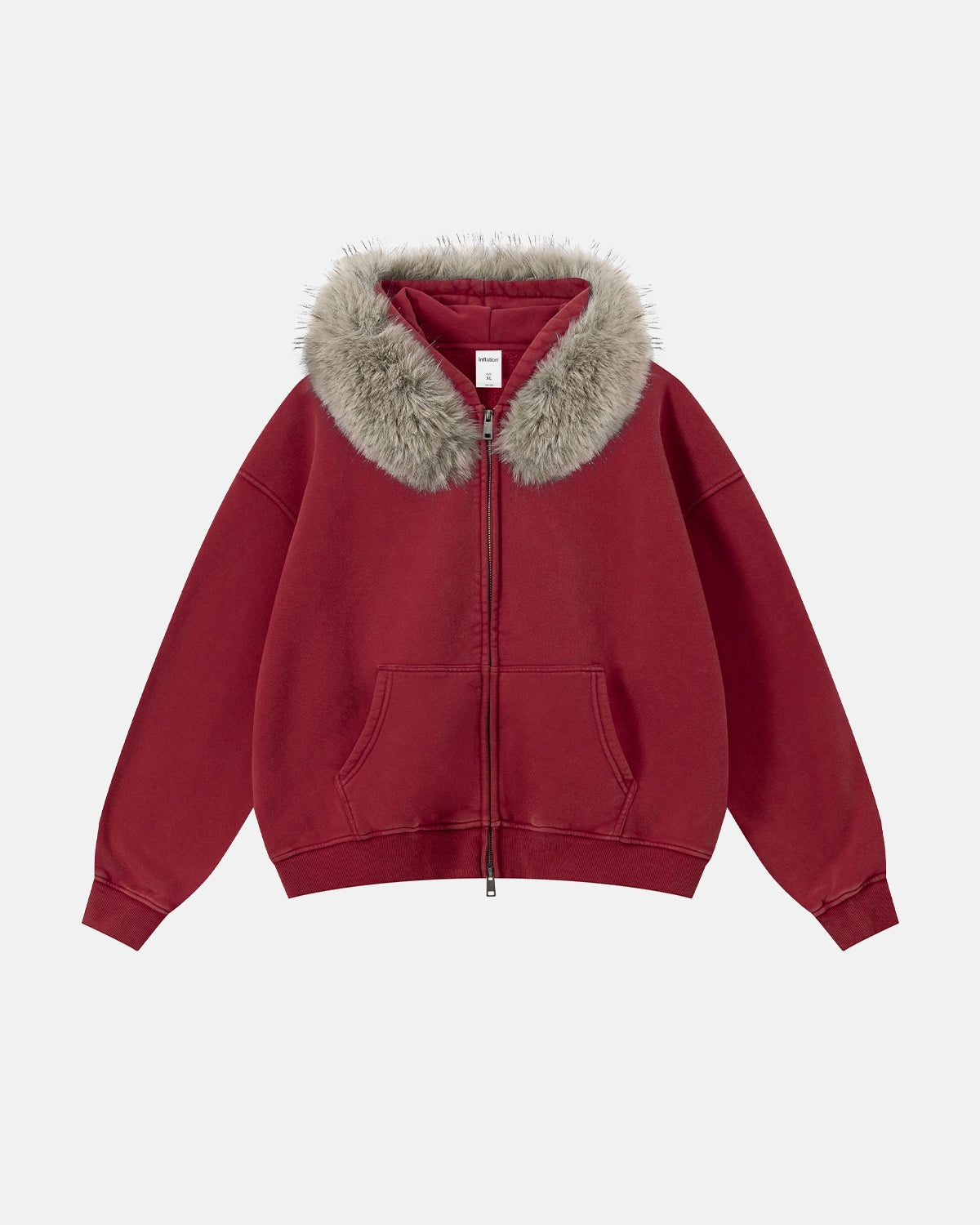 Faux Fur Collar Acid Wash Zip Up Hoodies | Streetwear