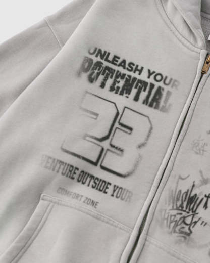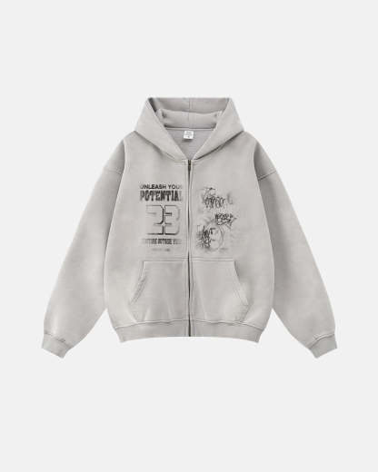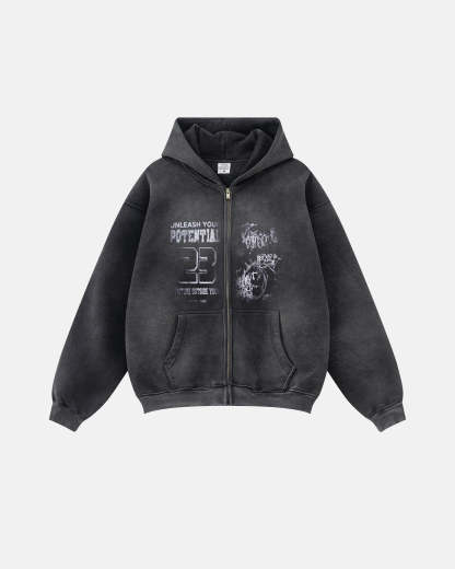 Graphic Washed Zip Up Hoodies | Streetwear