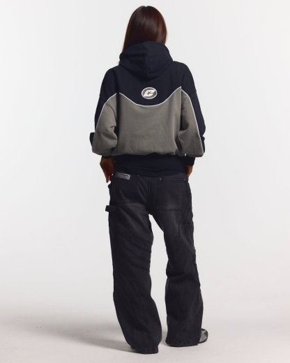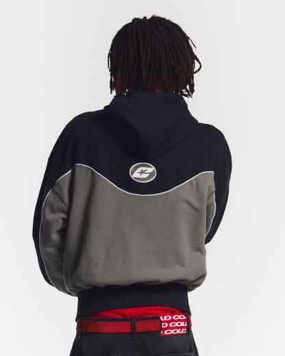 Boxy fit zip hoodie with diver style hood.