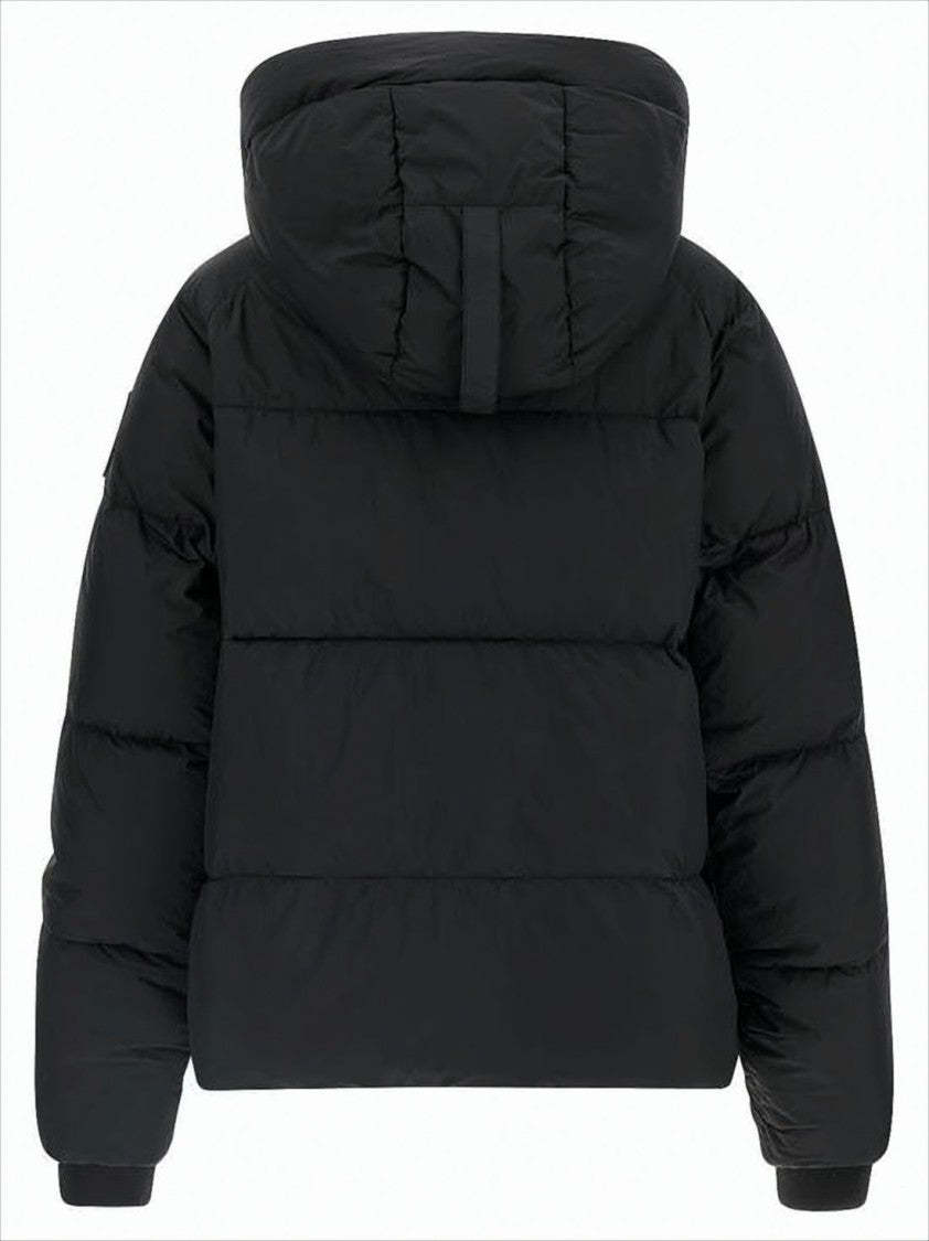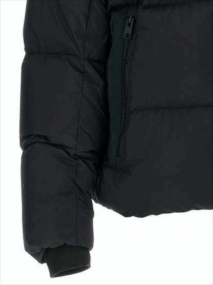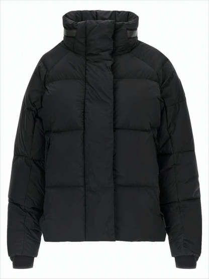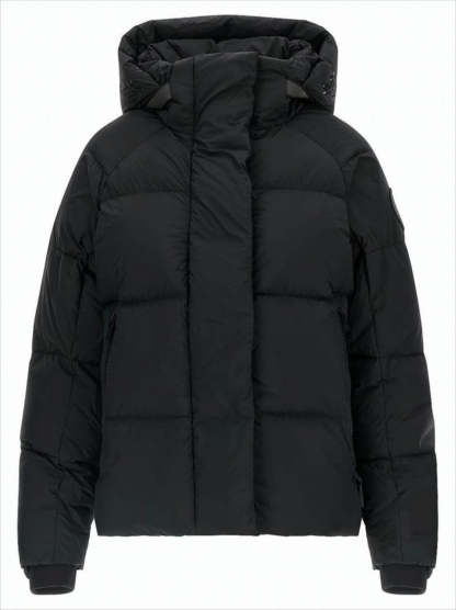 This Canada Goose quilted padded jacket is crafted with a luxurious matte finish, designed for superior warmth and style. Featuring a high collar, hood, and a front zip closure concealed by a placket, it embodies functionality with zippered side pockets and ribbed cuffs. With a slightly cropped fit, this jacket is perfect for a chic, casual look.