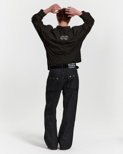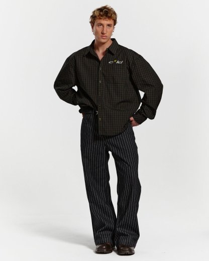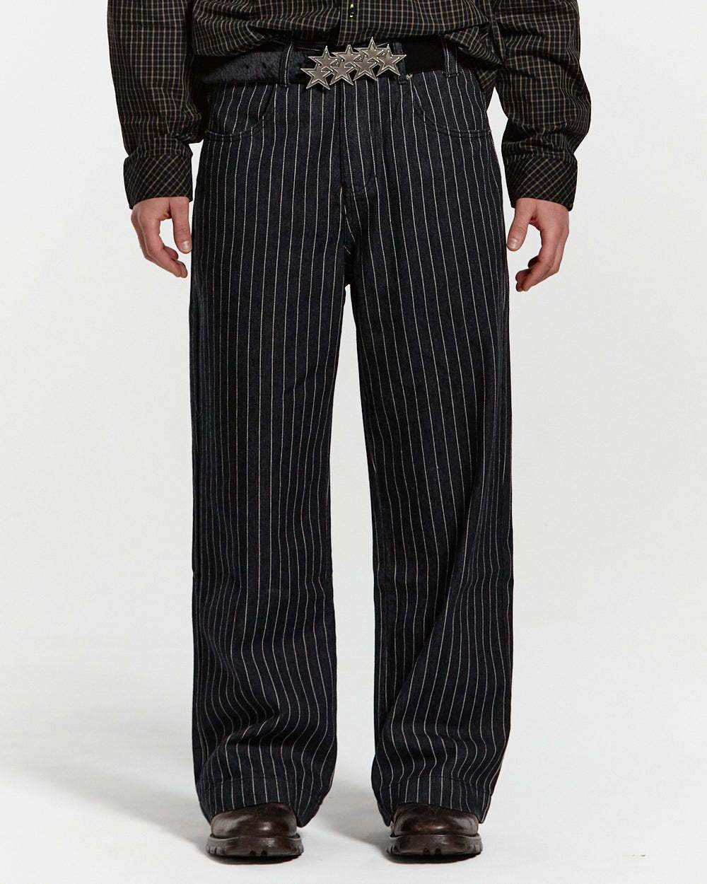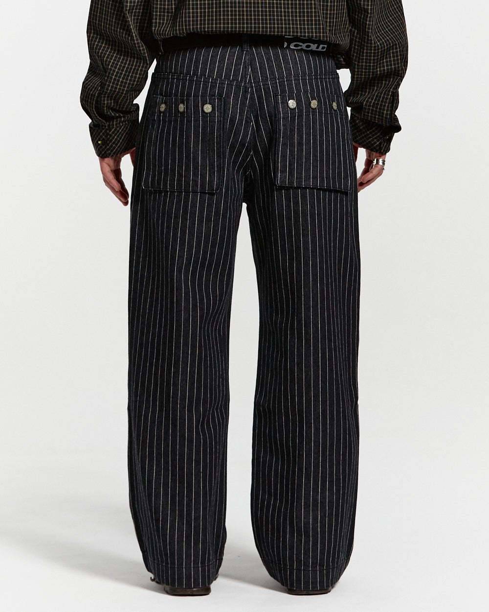Loose-fitting straight trousers.