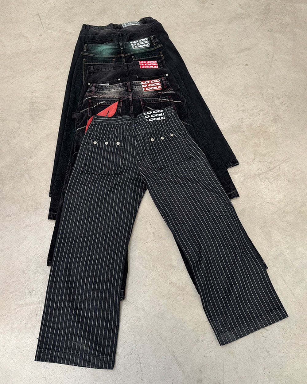 Black denim color.