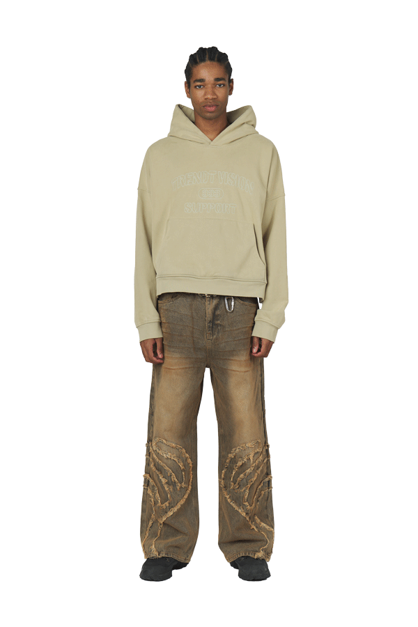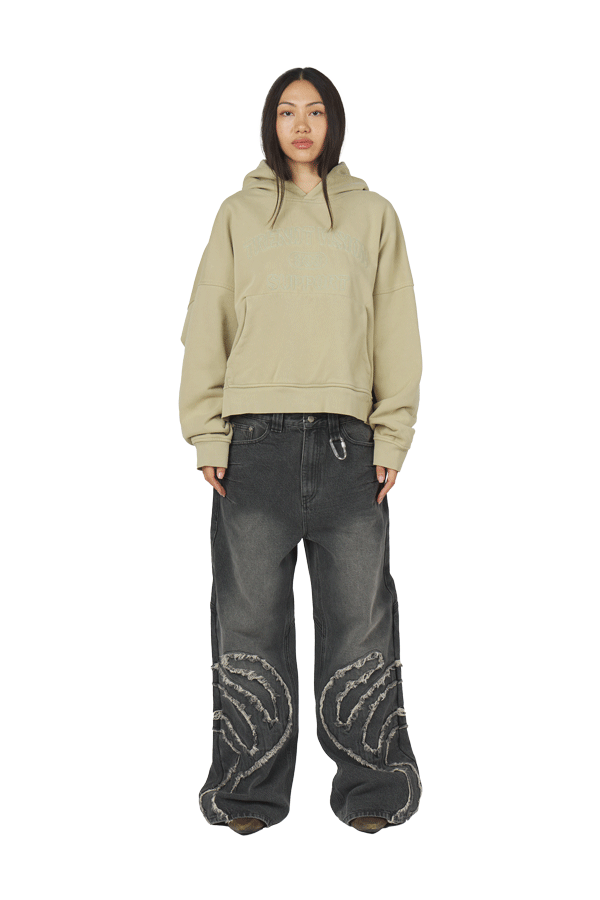 - Male Model is 189 cm wears LARGE- Female Model is 171 cm wears SMALL- 490 GSM- 100% Cotton- Boxy and oversized fit