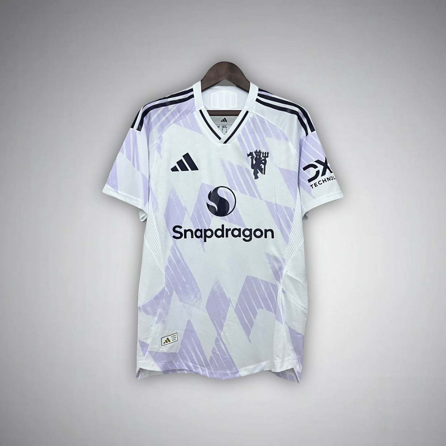 25/26 Manchester United Away Kit – A bold reinterpretation of the club’s historic away colors, featuring a sharp design that blends heritage with modern flair. Made from breathable, high-performance fabric for comfort on and off the pitch. Finished with premium detailing and the iconic crest – built for true Red Devils, wherever they go.