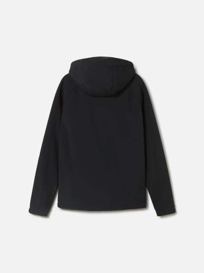 This hooded softshell jacket features the embossed crest of your favourite team, FC Barcelona. Decorative details at the zips and pocket with the Barça name. High neckline. It comes with an adjustable hood and is lined for extra warmth on cold days. Long sleeves. Adjustable inner waist. Light plush interior. Velcro adjustable cuffs for greater comfort. Waterproof zip fastening. Front pockets: 3 with waterproof zips. Colour: Black