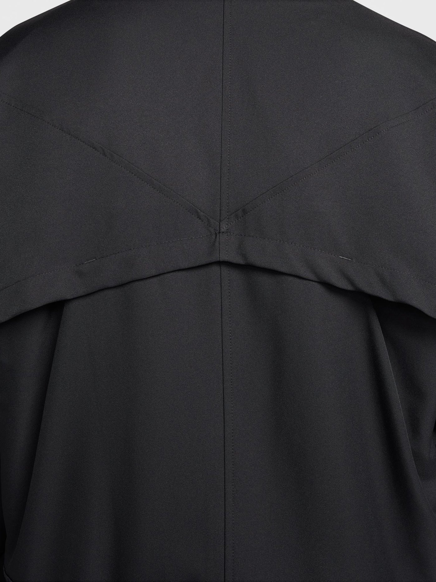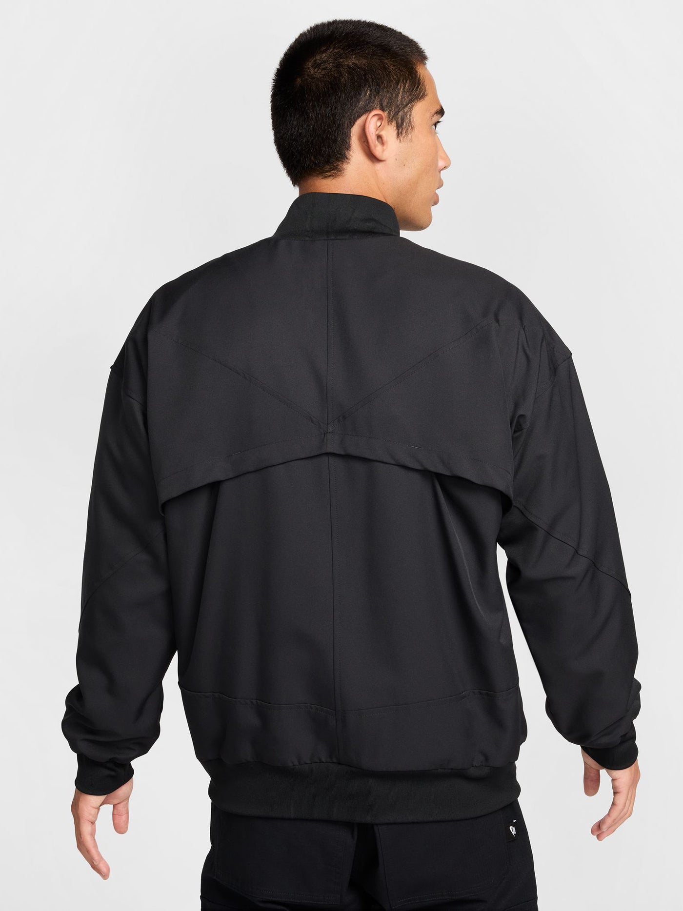 FC Barcelona 24/25 pre-match away jacket. Designed with embroidered FC Barcelona shield and Nike logo. Mandarin collar. Long sleeve. Zip fastening. Elasticated waist and cuffs. Front pockets: 2 with zipper. Colour: Black.