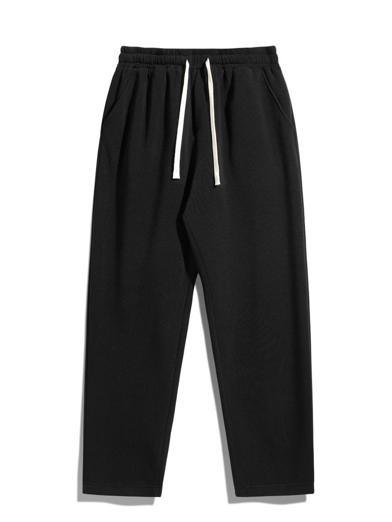 Men's Solid Thermal Lined Drawstring Waist Pants, Casual Relaxed Comfy Regular Fit Plain Straight Leg Trousers for Fall & Winter, Pants for Men, Men's Bottoms for Daily Wear, Work Pants Men, Mens Pants, Menswear, Smart Casual Street Style
