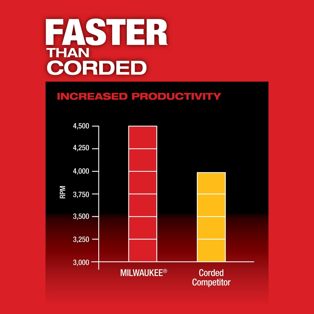 - The POWERSTATE Brushless motor spins at 4,500 RPM's resulting in faster productivity.