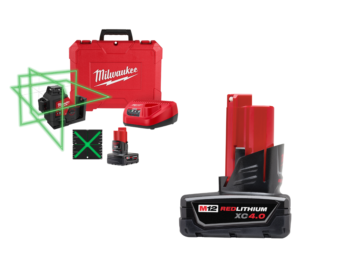 Milwaukee 3632-21X4 M12 Green 360 Degree 3-Plane Laser Kit w/ 4AH Battery