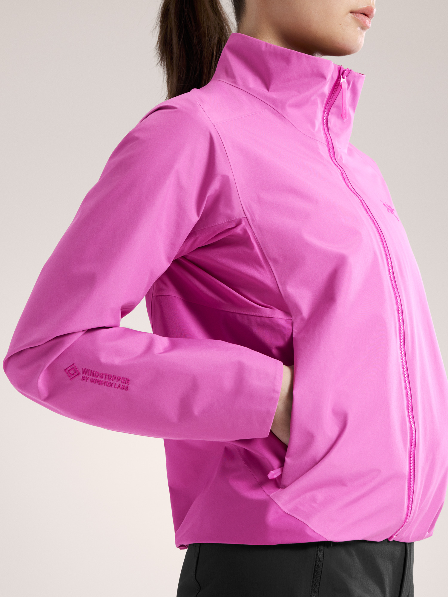Knife through exposed passes and relentless headwinds in this elevation-ready hiking shell with all the features of the hoody by the same name — minus the hood. The two-layer GORE-TEX fabric on the body, and sleeves provides focused wind protection and weather resistance without adding bulk to your worn weight. A highly breathable fabric under the arms and stretch-woven liner allow you to move naturally over scrambles and blowdown.