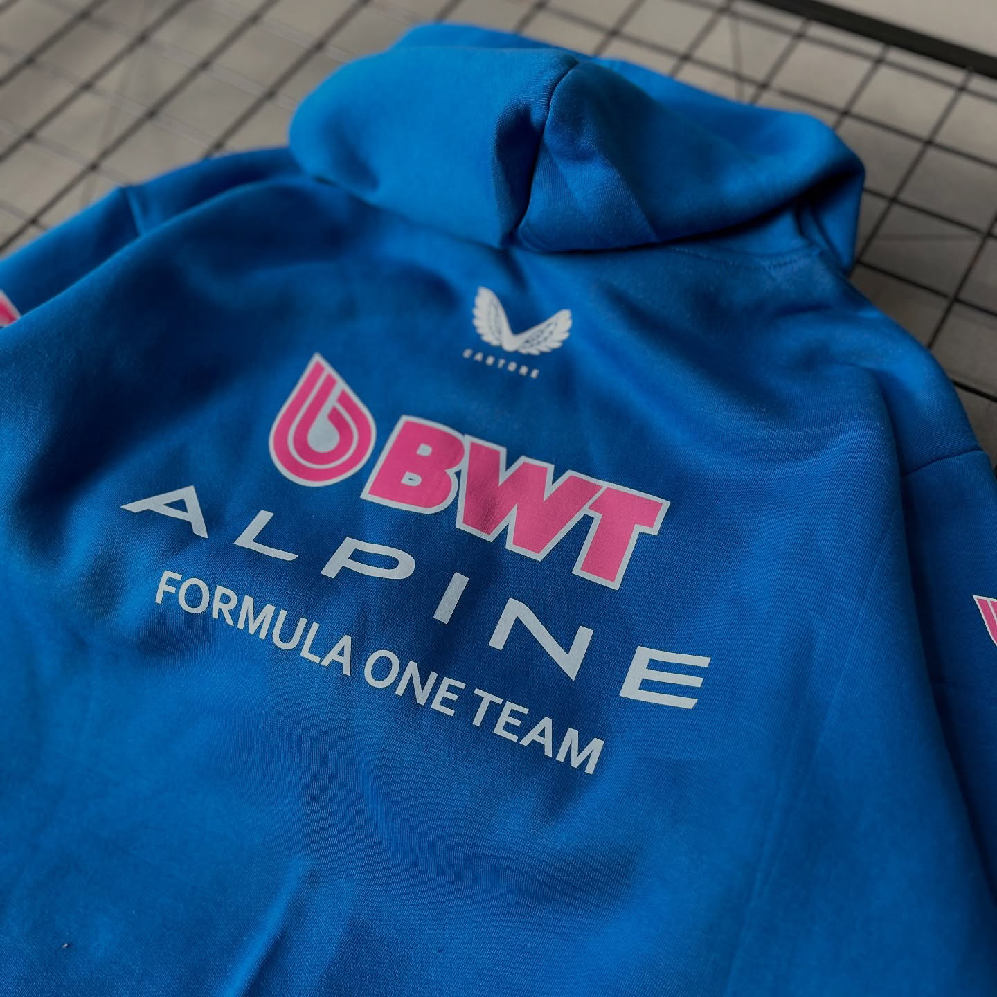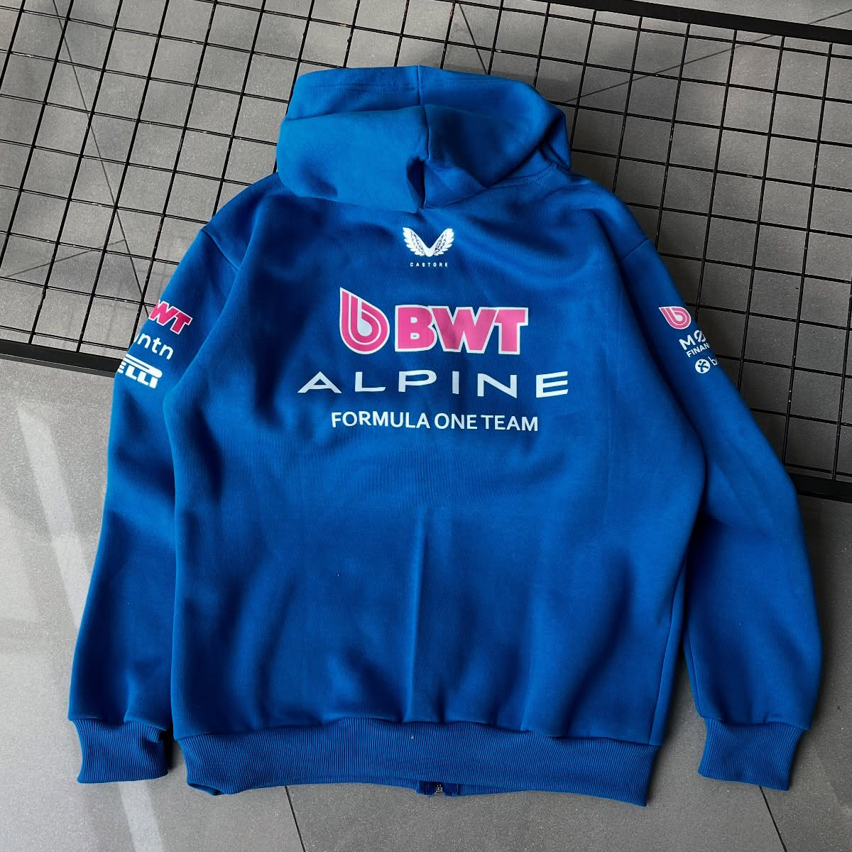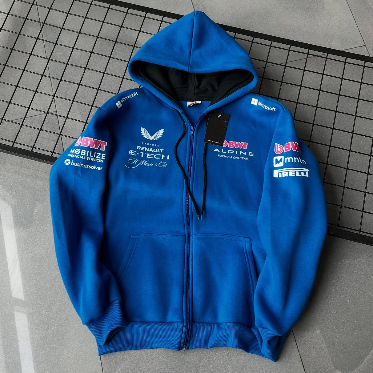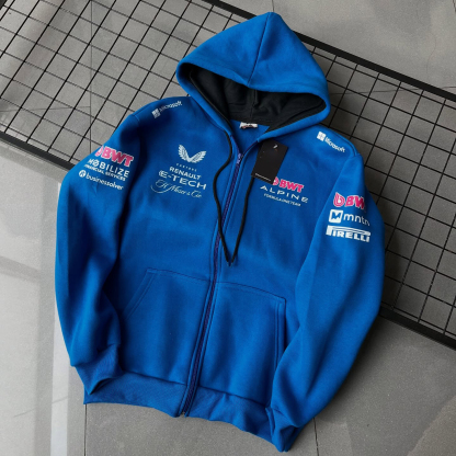 Unisex Loose Casual Racing Print Zipper Hooded Sweatshirt