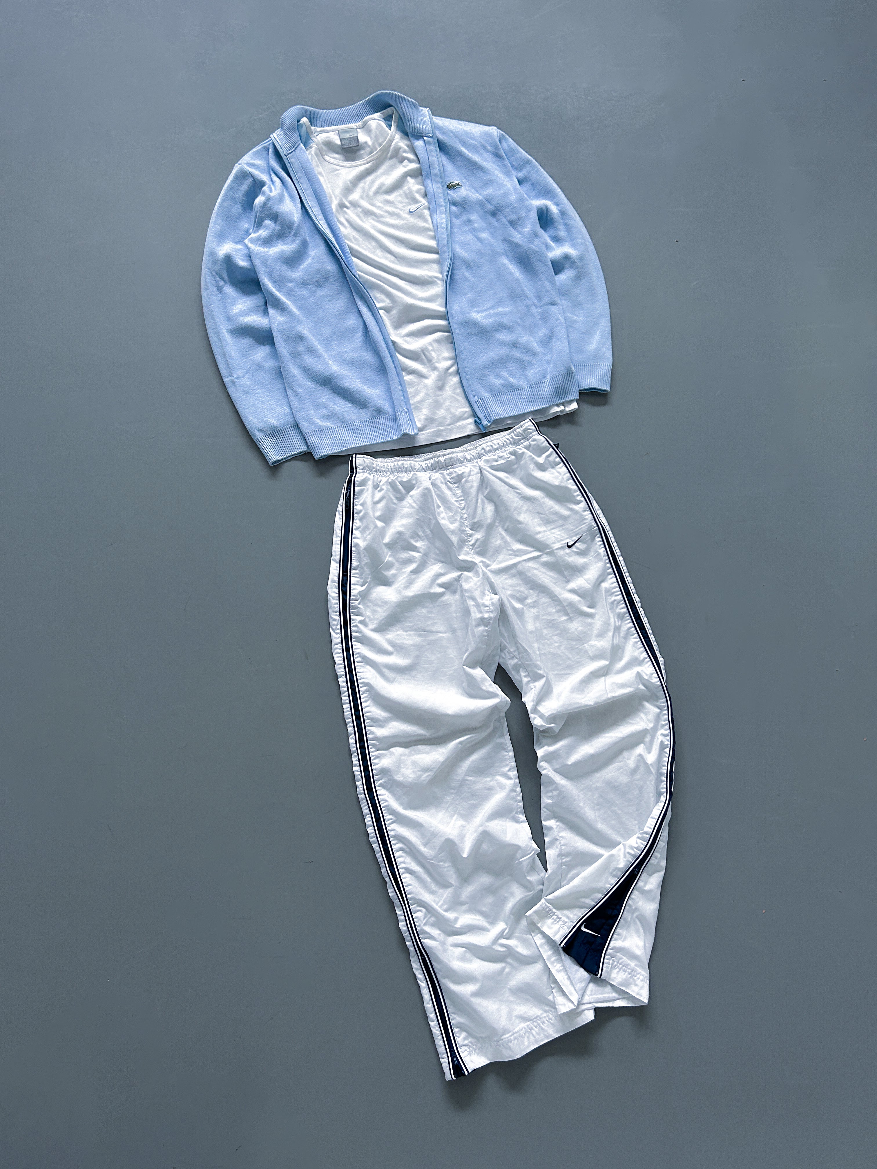Du erhältst 2 Exklusive Vintage Pieces. Das Oberteil ist ein Vintage-Sweater, eine Zip-Up-Jacke, eine Trackjacket oder eine Weste zum Beispiel von Vintage Nike oder Polo.
